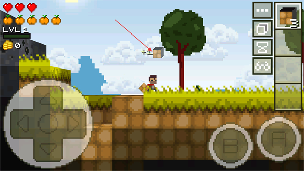 2、進(jìn)入游戲游玩場(chǎng)景后,點(diǎn)擊界面下方的B按鈕,可執(zhí)行與方塊相關(guān)的交互操作,比如對(duì)當(dāng)前方塊進(jìn)行操作。