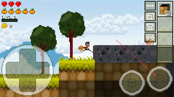 4、點(diǎn)擊界面下方的A按鈕,能夠控制游戲角色進(jìn)行跳躍,借助該操作可讓角色跨越不同的地形障礙。