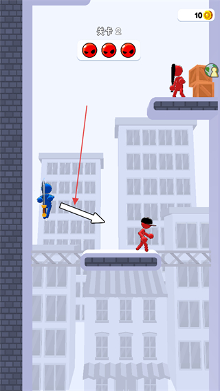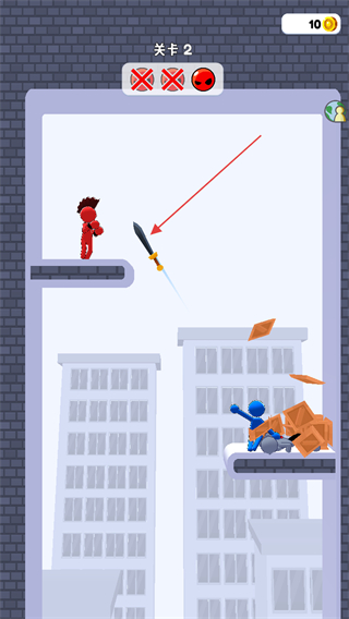 3、戰(zhàn)斗過程中,操控角色向紅色敵人投擲武器攻擊,命中后可推進戰(zhàn)斗,擊殺所有紅色敵人。