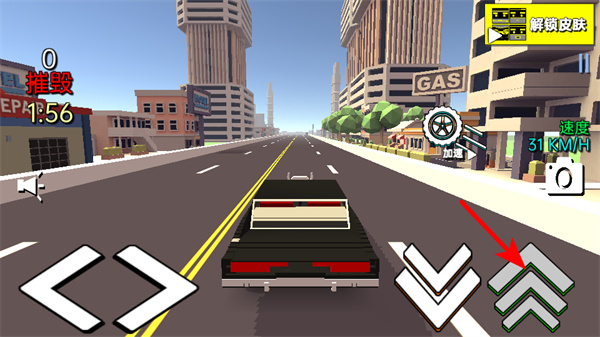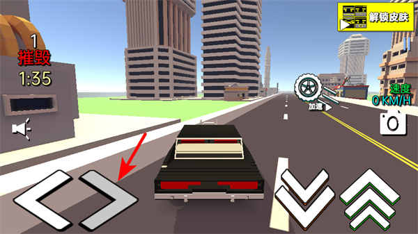 2、進入駕駛界面后,點擊右側(cè)的加速按鈕提升車輛速度,保持高速行駛的同時,可更高效地撞擊道路上的物體獲取破壞積分。