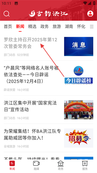 1、在古韻洪江首頁,點(diǎn)擊頂部的新聞選項(xiàng),進(jìn)入新聞列表頁面。