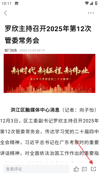 3、在新聞詳情頁,點(diǎn)擊底部的分享按鈕,彈出分享選項(xiàng)菜單。