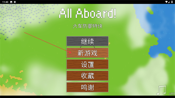 1、在全體登船防御列車的啟動界面,點擊新游戲按鈕,即可進入游戲關(guān)卡,開啟全體登船防御列車的游玩流程。