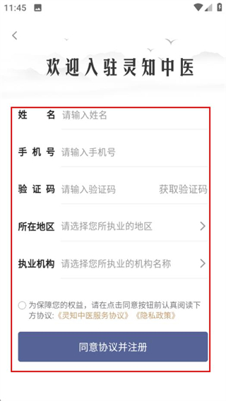 3、在注冊(cè)頁(yè)面,填寫(xiě)信息并勾選協(xié)議后,完成注冊(cè)操作。
