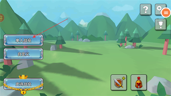 1、在游戲主界面點(diǎn)擊單人戰(zhàn)役按鈕,即可進(jìn)入單人關(guān)卡的游玩模式,開(kāi)啟戰(zhàn)役挑戰(zhàn)。