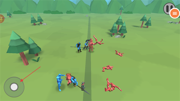 3、處于關(guān)卡1的戰(zhàn)斗界面時(shí),點(diǎn)擊右側(cè)按鈕可以移動(dòng)游戲視角觀察戰(zhàn)爭(zhēng)情況,推進(jìn)己方兵種與敵方單位的戰(zhàn)斗進(jìn)程。
