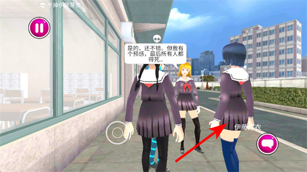 2、進(jìn)入場景后,通過虛擬搖桿操控角色移動(dòng),調(diào)整角色的位置,向目標(biāo)角色如對話對象靠近,推進(jìn)互動(dòng)劇情觸發(fā)條件。