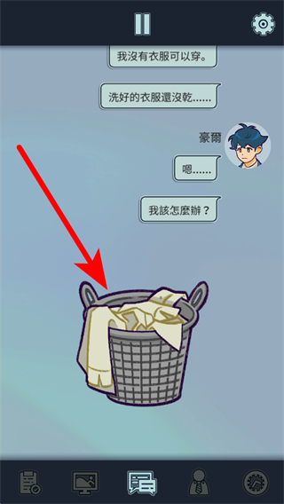 3、在衣物準(zhǔn)備場(chǎng)景中,點(diǎn)擊洗衣籃進(jìn)行互動(dòng),這是獲取穿搭物品的關(guān)鍵步驟,互動(dòng)后可解決無(wú)衣可穿的問題并推進(jìn)流程。