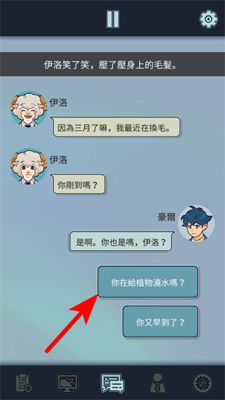 4、在公司互動(dòng)場(chǎng)景中,選擇你在給植物澆水嗎對(duì)話選項(xiàng),這是推動(dòng)互動(dòng)劇情的核心操作,可解鎖后續(xù)的職場(chǎng)交流內(nèi)容。