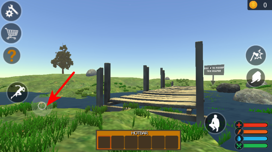 2、進入場景后,通過左側的虛擬搖桿操控角色移動,調整位置探索場景區(qū)域,尋找可互動的資源如武器、材料,推進準備流程。