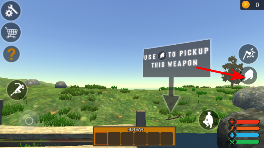 3、遇到可拾取的物品如武器時,點擊對應的拾取按鈕獲取道具,這些道具會存入背包,可用于后續(xù)的生存、戰(zhàn)斗或制作操作。