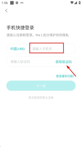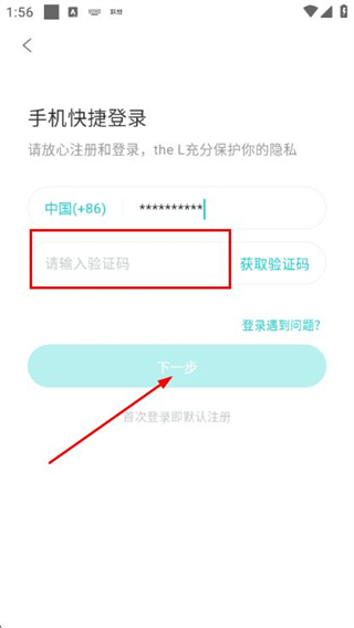 3、在驗(yàn)證碼輸入框中填寫收到的驗(yàn)證碼,點(diǎn)擊下一步完成賬號(hào)的登錄操作。