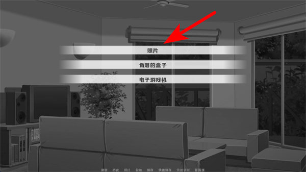 3、進(jìn)入游戲房間的場(chǎng)景后,我們選擇互動(dòng)選項(xiàng)中的照片,這是調(diào)查場(chǎng)景線索的關(guān)鍵操作,選擇后可獲取相關(guān)劇情信息。