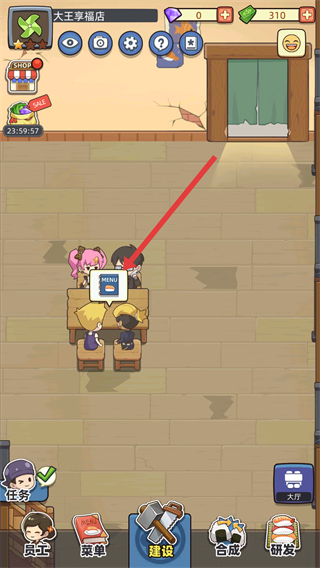 1、裝扮好壽司店之后,等待客人入座,按照提示點擊菜單。