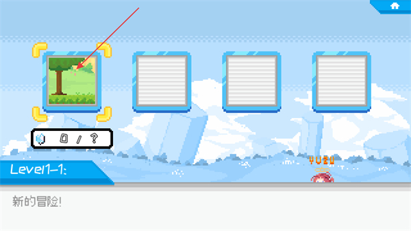 2、這是關(guān)卡選擇界面,當(dāng)前僅Level1-1對應(yīng)的場景圖關(guān)卡解鎖,點(diǎn)擊該區(qū)域即可進(jìn)入此關(guān)卡開啟冒險(xiǎn)。