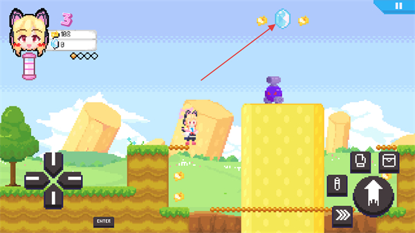 4、在關(guān)卡內(nèi)探索場景,需控制角色移動(dòng)收集藍(lán)色水晶等道具,同時(shí)留意怪物的行動(dòng)軌跡進(jìn)行躲避。