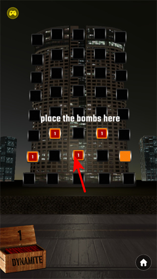 3、獲取道具后,點(diǎn)擊建筑上的指定區(qū)域如提示位置可布置炸藥,合理選擇建筑的關(guān)鍵結(jié)構(gòu)點(diǎn)如承重區(qū)域,提升爆破的破壞效率。