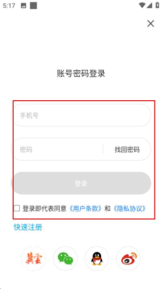 3、在登錄頁(yè)面,填寫(xiě)信息并勾選協(xié)議后,點(diǎn)擊登錄完成賬號(hào)登錄。