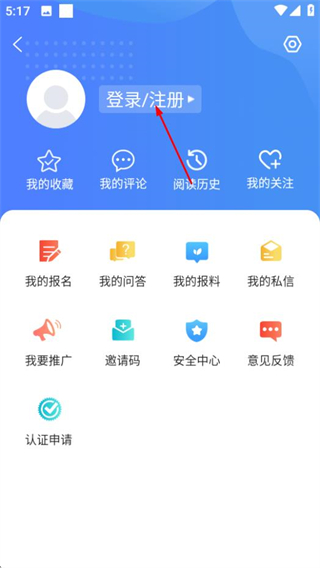 2、在個(gè)人功能頁(yè)面,點(diǎn)擊登錄注冊(cè)選項(xiàng),進(jìn)入賬號(hào)密碼登錄頁(yè)面。