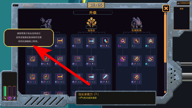 4、使用右邊操控收集完碎石資源后,可將資源用于升級(jí)裝置。