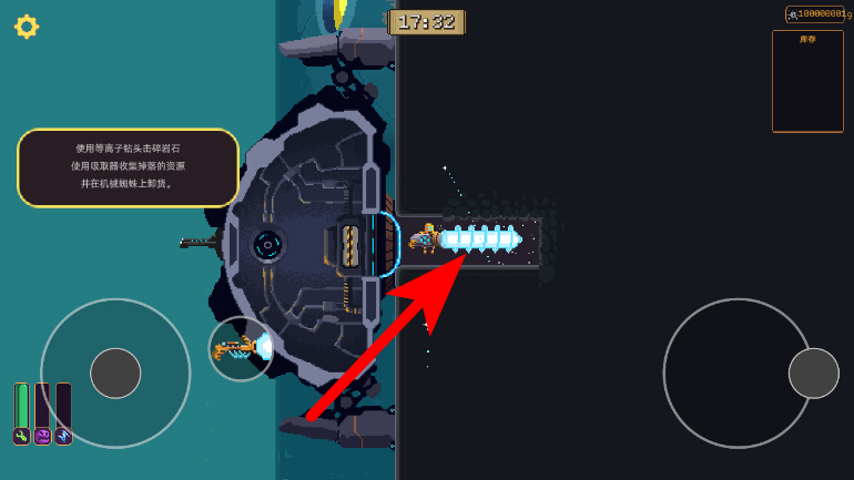3、操作角色靠近碎石,使用鉆頭擊碎碎石,獲取對(duì)應(yīng)資源。