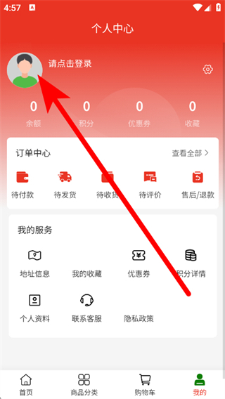 2、在個(gè)人中心頁面,點(diǎn)擊請(qǐng)點(diǎn)擊登錄,進(jìn)入登錄界面。