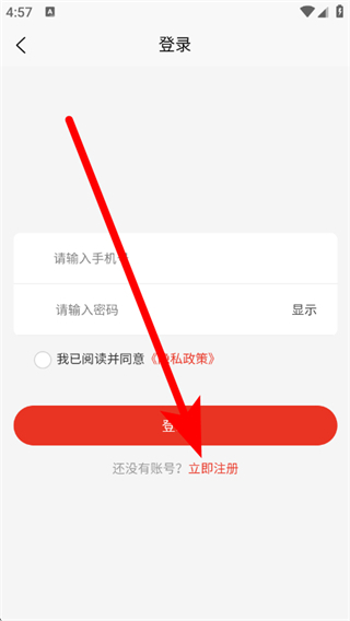 3、在登錄頁面,點(diǎn)擊選擇立即注冊(cè),進(jìn)入注冊(cè)頁面。
