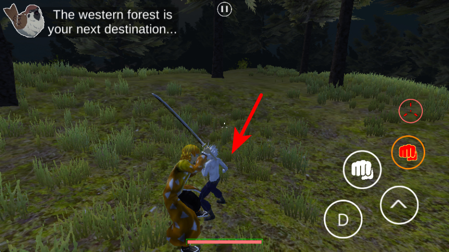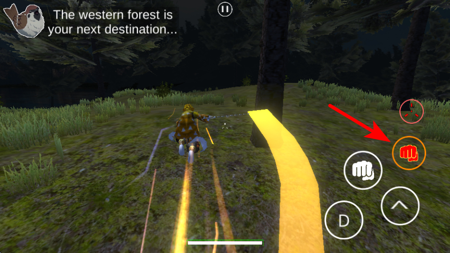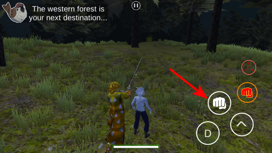 4、戰(zhàn)斗結(jié)束后,通過移動(dòng)按鈕操控角色前往新的目標(biāo)區(qū)域如提示的西部森林,探索新場(chǎng)景、觸發(fā)新劇情,推進(jìn)冒險(xiǎn)的流程。