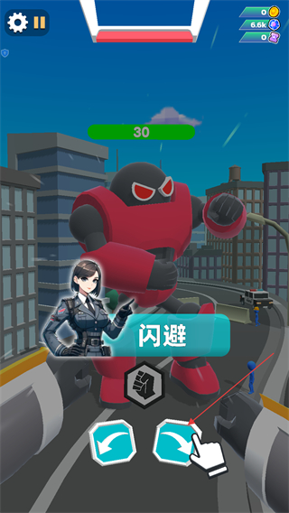 2、戰(zhàn)斗中敵方發(fā)起攻擊時(shí),界面會(huì)彈出閃避提示,點(diǎn)擊下方的雙向箭頭按鈕,操控機(jī)甲完成閃避動(dòng)作以規(guī)避傷害。