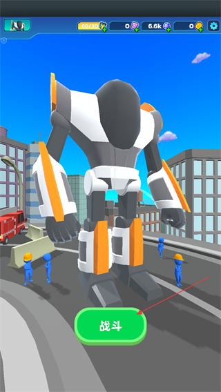 1、點(diǎn)擊界面下方戰(zhàn)斗的按鈕,即可進(jìn)入城市場(chǎng)景的戰(zhàn)斗關(guān)卡,此時(shí)機(jī)甲處于待戰(zhàn)狀態(tài),周圍可見(jiàn)建筑與角色,準(zhǔn)備開啟對(duì)戰(zhàn)流程。