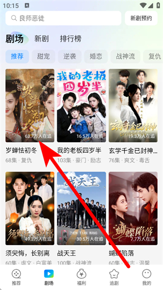 2、在劇場頁面,選擇目標短劇,點擊進入短劇播放頁。