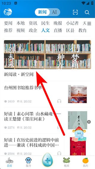 3、在人文頁面,點(diǎn)擊新閱讀·新空間內(nèi)容,進(jìn)入詳情頁。