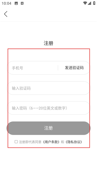 4、在注冊頁面,填寫信息并勾選協(xié)議后,點擊注冊完成賬號注冊。