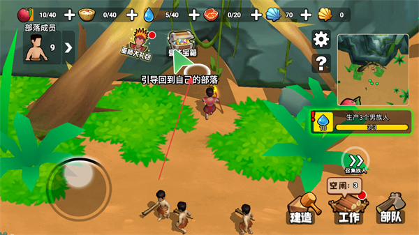 2、精細化部落管理系統(tǒng),除基礎(chǔ)工作分配外,可根據(jù)族人屬性解鎖專屬技能,如擅長采集的族人提升物資獲取效率,強化部落發(fā)展?jié)摿Α?