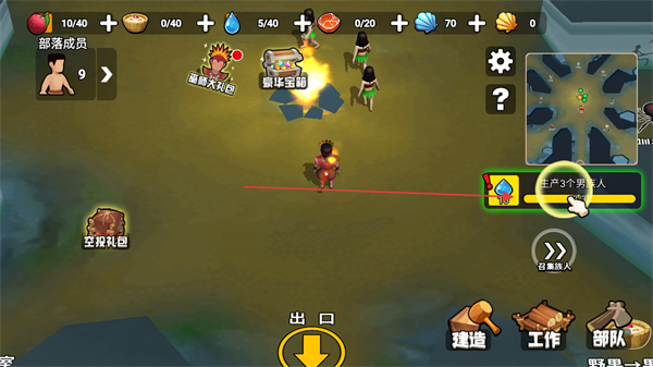 3、點擊生產(chǎn)3個男人相關(guān)按鈕,推進部落成員生產(chǎn)的任務(wù)進度。