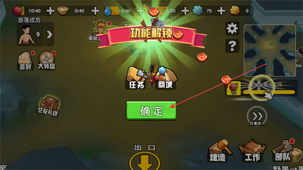 4、出現(xiàn)功能解鎖界面后,點擊確定按鈕,解鎖新功能并繼續(xù)游戲。