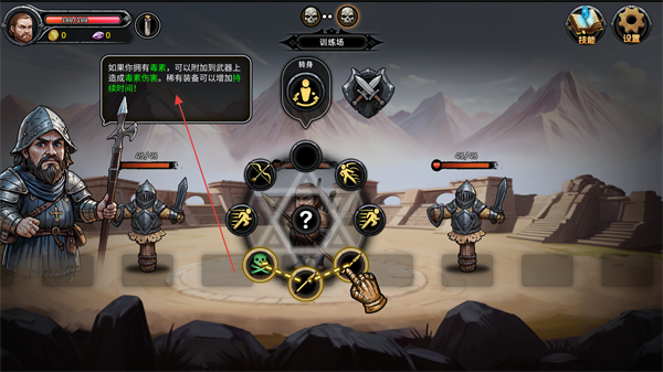 2、在戰(zhàn)斗時,輪盤內隨機出現(xiàn)技能,拖拽組合技能來攻擊,也可給攻擊選取屬性加上屬性傷害。