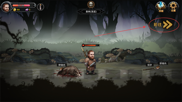 4、在結束一場戰(zhàn)斗后點擊前往推進,擊敗怪物可獲得物品,還有各種隨機事件等你來發(fā)現(xiàn)。