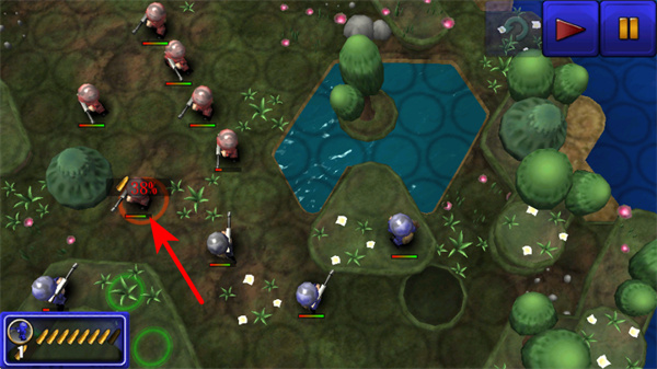 4、移動至敵方單位附近后,觸發(fā)戰(zhàn)斗互動,擊敗敵方單位可獲取戰(zhàn)場優(yōu)勢,同時(shí)推進(jìn)關(guān)卡的勝利進(jìn)度,解鎖更多戰(zhàn)場區(qū)域。