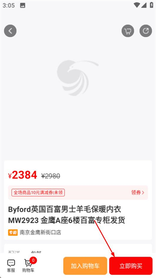 4、在商品詳情頁,點(diǎn)擊立即購買按鈕,可完成該商品的購買流程。
