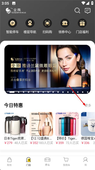 2、在門店頁面,點(diǎn)擊今日特惠右側(cè)的更多按鈕,進(jìn)入特惠商品列表頁。