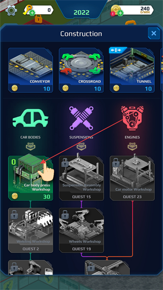3、在建筑界面選擇要建造的設(shè)施如CarbodypressWorkshop,消耗資源解鎖。