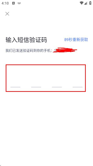 4、在輸入短信驗證碼頁面填寫收到的驗證碼,完成賬號的登錄操作。