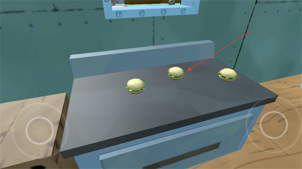 4、進(jìn)入蟹堡王廚房開(kāi)啟一天的美味蟹黃堡的制作,點(diǎn)擊烤爐上的美味蟹黃堡可以進(jìn)行翻面。