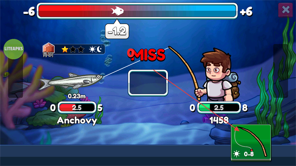 3、若出現(xiàn)MISS,及時調(diào)整力度,保持釣竿力度與魚的拉力平衡。