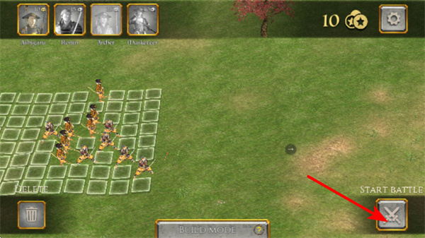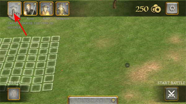 3、選定兵種后,將士兵布置在戰(zhàn)場的網(wǎng)格區(qū)域中,完成陣容布局后點擊START BATTLE,即可觸發(fā)與敵方部隊的戰(zhàn)斗,通過配合壓制對手。