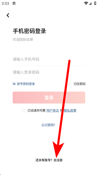 2、在登錄界面,點(diǎn)擊去注冊(cè),進(jìn)入注冊(cè)頁(yè)面。