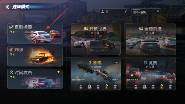 3、在選擇模式界面,可挑選對應游戲模式,例如點擊直到撞毀模式,進入該玩法的駕駛挑戰(zhàn)環(huán)節(jié)。