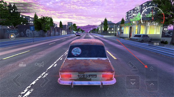 4、進入游戲駕駛界面后,通過操作按鈕控制車輛行駛,可使用按鍵調整方向、進行漂移等操作,同時關注行駛狀態(tài)以持續(xù)推進游戲。