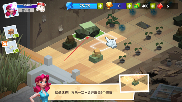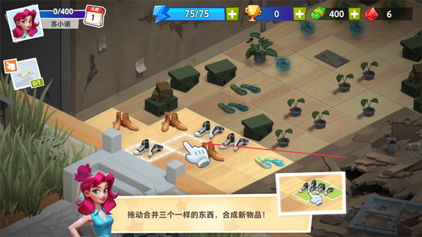 1、按照提示拖動三個相同物品,合并成新物品,完成基礎合成操作。
